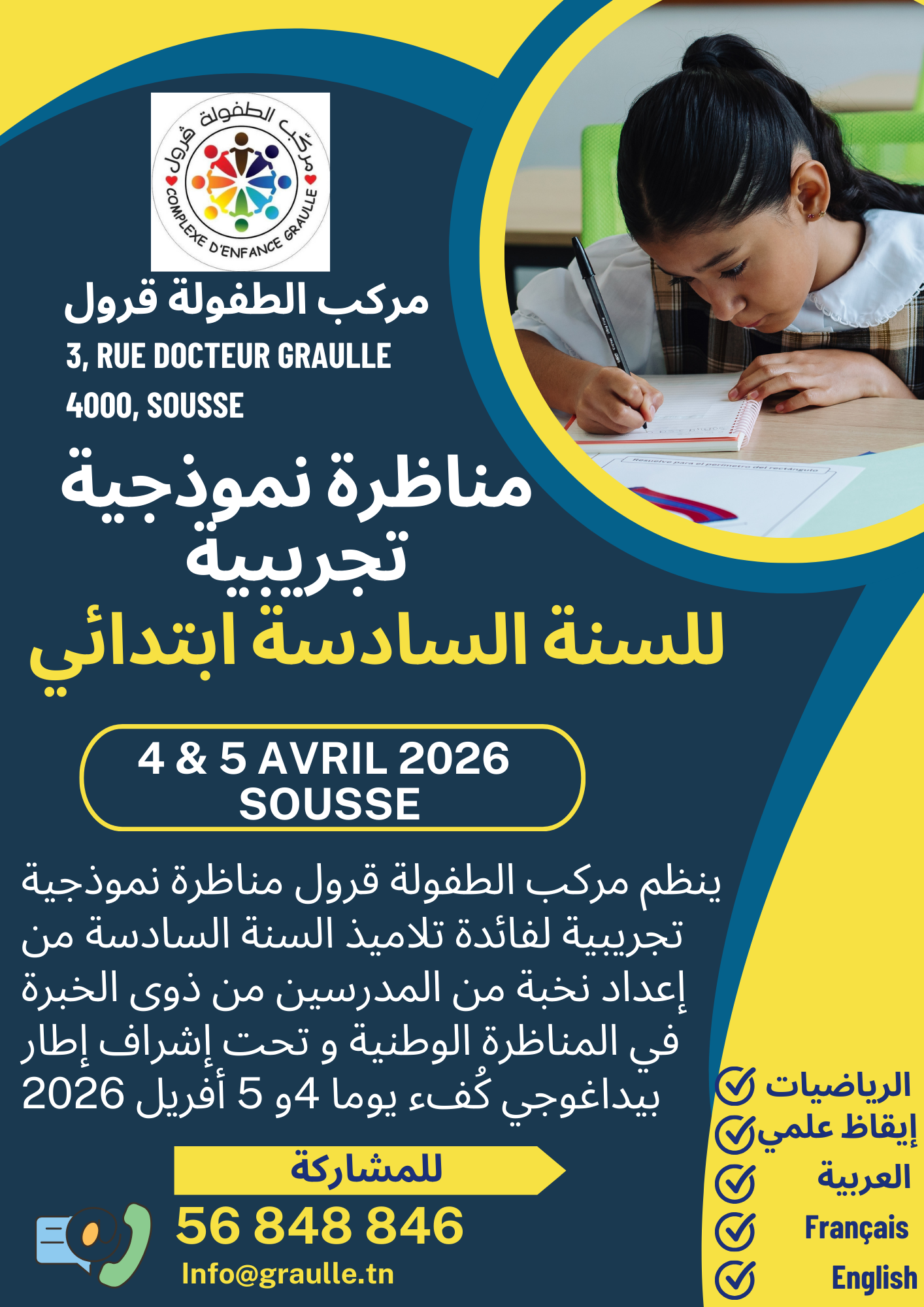Le complexe d’enfance Graulle est localisé au coeur de la ville de Sousse, avec sa garderie scolaire, crèche, maternelle et classes préparatoires, nous offrons des environnements de soutien et d’inspiration pour que les jeunes esprits curieux apprennent et grandissent avec nous.